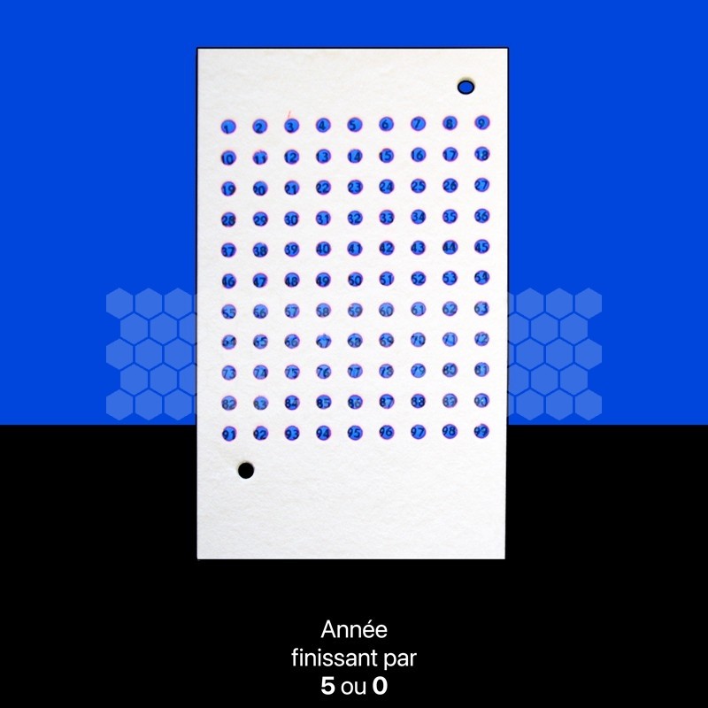 La carte comprend 99 pastilles numérotées de 1 à 99 de couleur bleue.