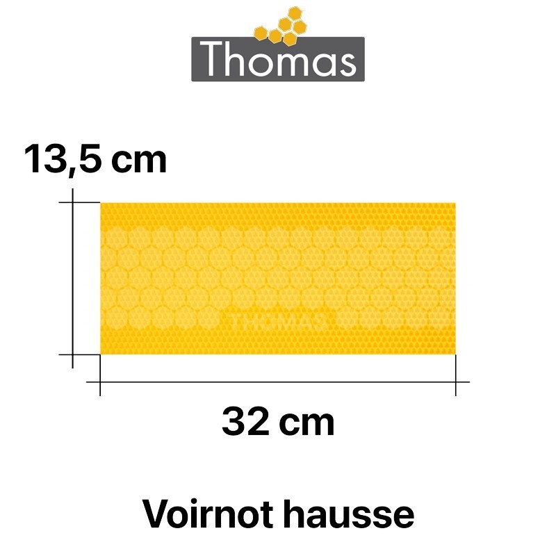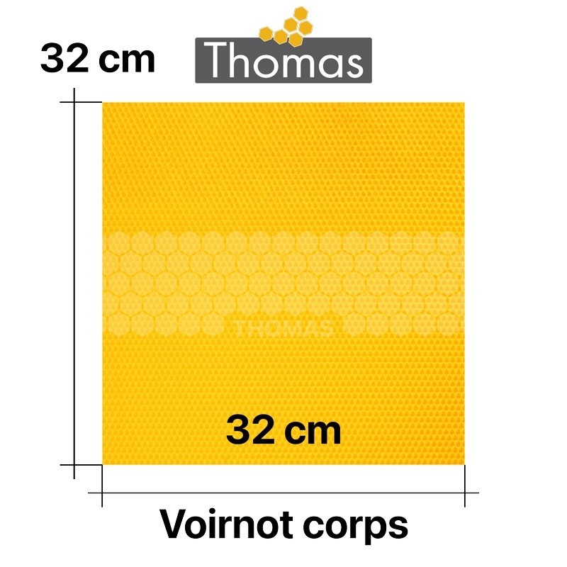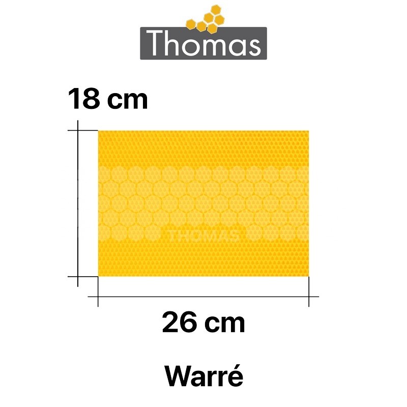 780 alvéoles au dm². Pour une meilleure protection, pendant le transport notamment, la cire est conditionnée dans un carton sur mesure. Notre cire est épurée, stérilisée et gaufrée dans notre atelier de Fay-aux-Loges. Elle est obtenue par coulage. Notre cire est par nature plus cassante et nécessite d'être manipulée avec précaution. Nous vous recommandons de l'entreposer dans un local à température ambiante (20 - 25°C) la veille de son utilisation. Un délai réduit entre le cirage du cadre en température et son installation renforcera encore son appétence. À la lumière, il est normal que la cire naturelle blanchisse avec le temps.