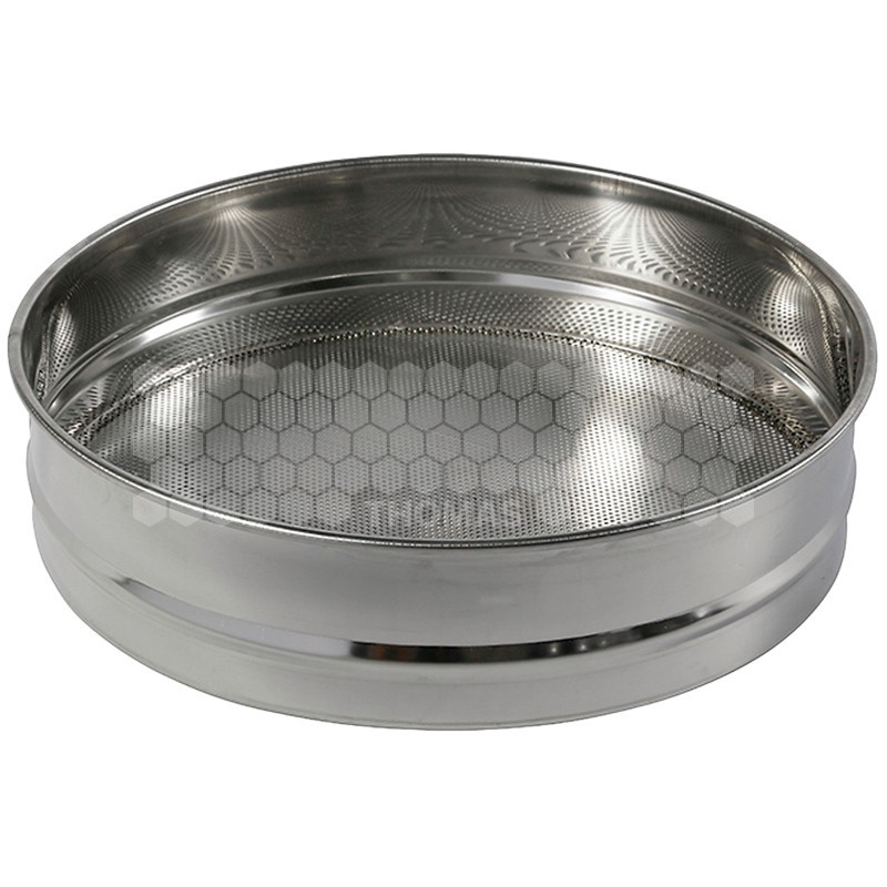 Réalisés en inox alimentaire pour être adaptés aux maturateurs Melinox, ils intègrent un fond en tôle perforée de 2 mm qui filtre le miel pour le débarrasser de ses plus grosses impuretés. Ils s’emboîtent directement sur le maturateur ou sur un tamis plus fin (perforation 1 mm) lui-même positionné sur ce dernier pour une double filtration.