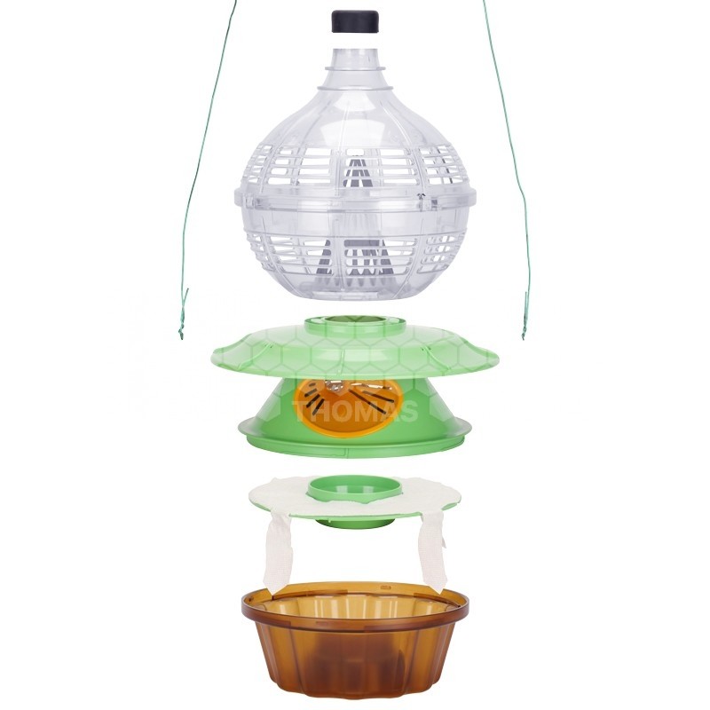Grâce à son design pratique et démontable, le piège s’installe rapidement dans les jardins, vergers, ruchers ou espaces publics. Le globe de capture se dévisse facilement pour retirer les frelons asiatiques en toute sécurité, par congélation de préférence (solution la plus respectueuse).