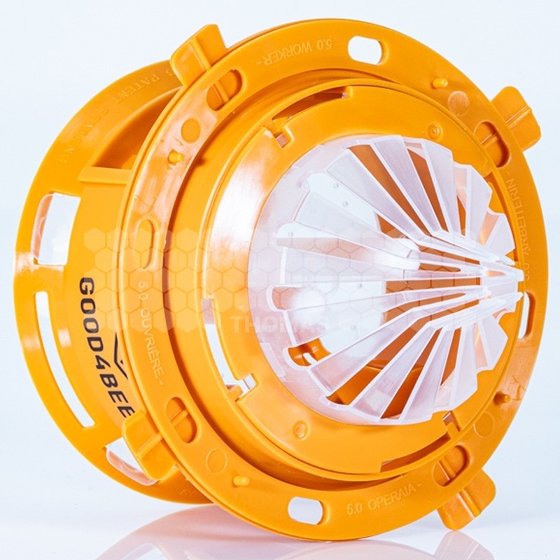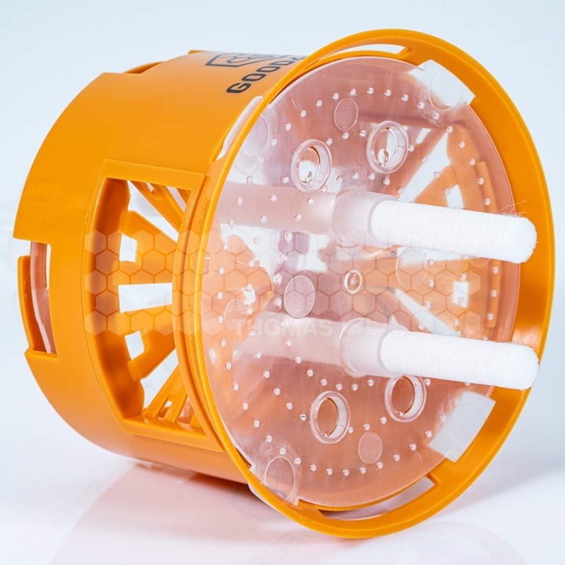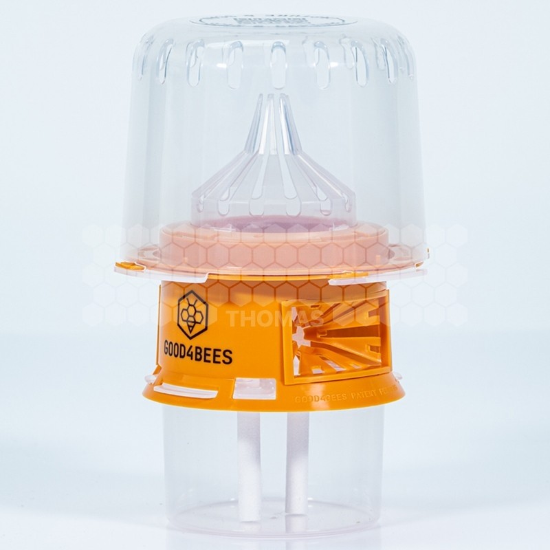 Léger, compact et simple à installer (branche, sol, rucher), le Good4Bees V2 dispose d’un réservoir transparent et d’un système déclipsable facilitant contrôle, remplissage et nettoyage. Robuste et réutilisable, il s’adapte aux saisons grâce aux réducteurs d’entrée : sans réducteur au printemps pour capturer les reines fondatrices, puis calibré en période d’activité des ouvrières.