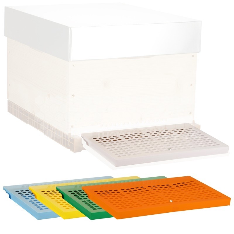 Facile à installer, résistante aux intempéries et disponible en plusieurs couleurs vives, cette muselière est à la fois fonctionnelle et pratique. Elle permet aux abeilles de sortir et rentrer librement tout en limitant la prédation par les frelons en vol stationnaire devant la planche d’envol.