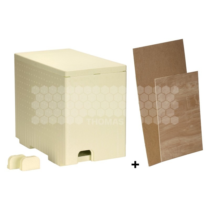 Cette ruchette peut également être équipée d'un toit en tôle galvanisé (réf. 16166), d'un nourrisseur couvre-cadres paraffiné bois (réf. 564) ou encore d'un plateau couvre-cadres bois avec trou nourrisseur (réf. 1459).